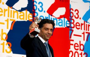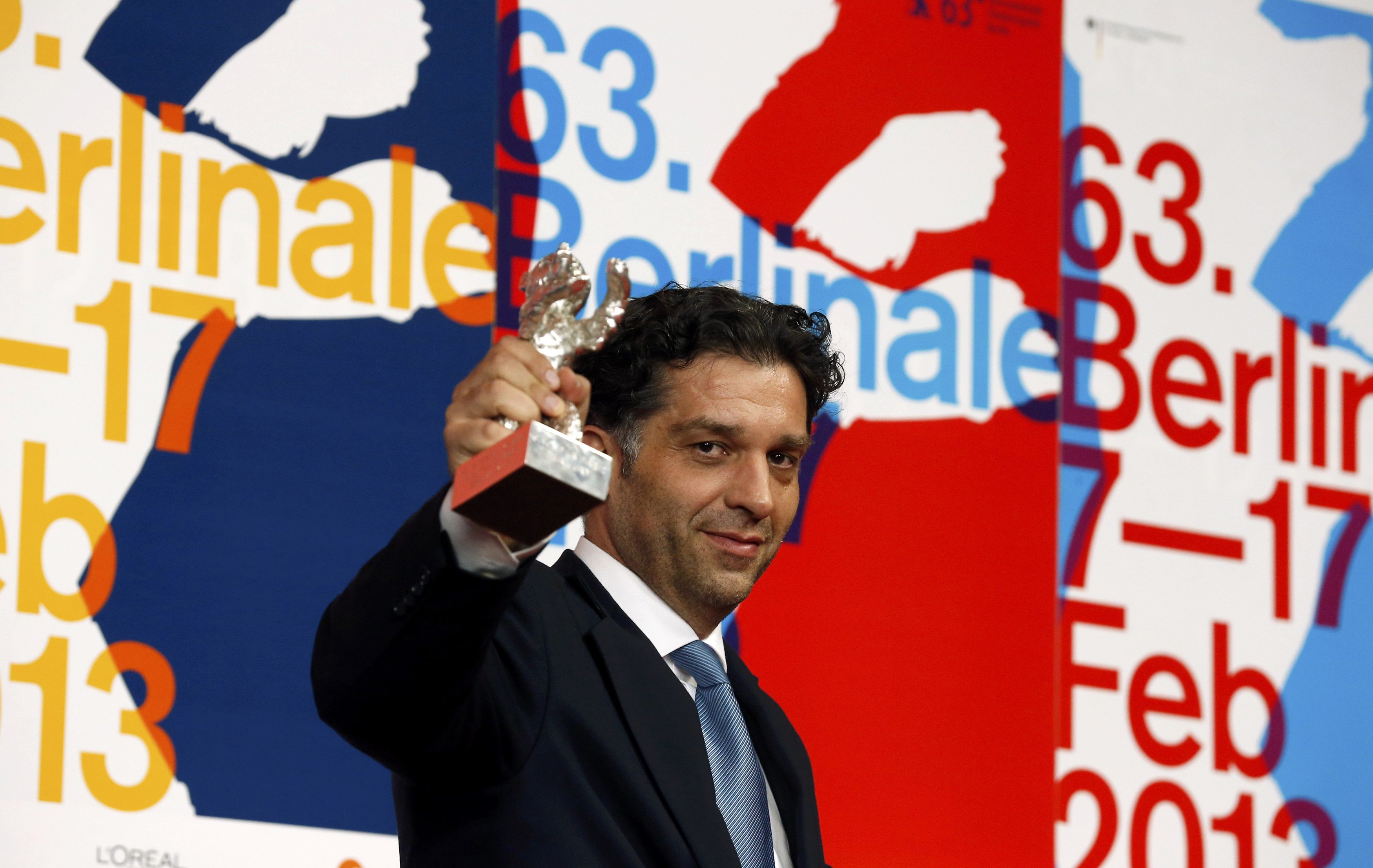 Director Danis Tanovic holds the Jury Grand Prix Silver Bear award for the movie “Epizoda u zivotu beraca zeljeza” (An Episode in the Life of an Iron Picker) at the 63rd Berlinale International Film Festival in Berlin February 16, 2013. REUTERS/Tobias Schwarz (GERMANY – Tags: ENTERTAINMENT)