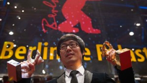 Chinese director Diao Yinan poses with the Golden Bear for Best Film and with the Silver Bear for Best Actor after the awarding ceremony of the 64th Berlinale Film Festival on the red carpet in front of the Berlinale Palace in Berlin on February 15, 2014. The film “Bai Ri Yan Huo” (Black Coal, Thin Ice) won the competition, Chinese actor Chinese actor Liao Fan was given the Silver Bear for Best Actor. The 64th Berlinale, the first major European film festival of the year, takes place from February 6 to 16, 2014 with 24 international productions screening in the main showcase. AFP PHOTO / JOHANNES EISELE