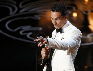 Matthew McConaughey accepts the Oscar for best actor for his role in “Dallas Buyers Club” at the 86th Academy Awards in Hollywood, California March 2, 2014. REUTERS/Lucy Nicholson (UNITED STATES – Tags: ENTERTAINMENT) (OSCARS-SHOW)