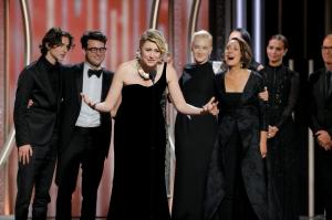 Greta Gerwig director of Lady Bird accepts the award for Best Motion Picture Comedy or Musical at the 75th Golden Globe Awards in Beverly Hills, California, U.S. January 7, 2018. Paul Drinkwater/Courtesy of NBC/Handout via REUTERS