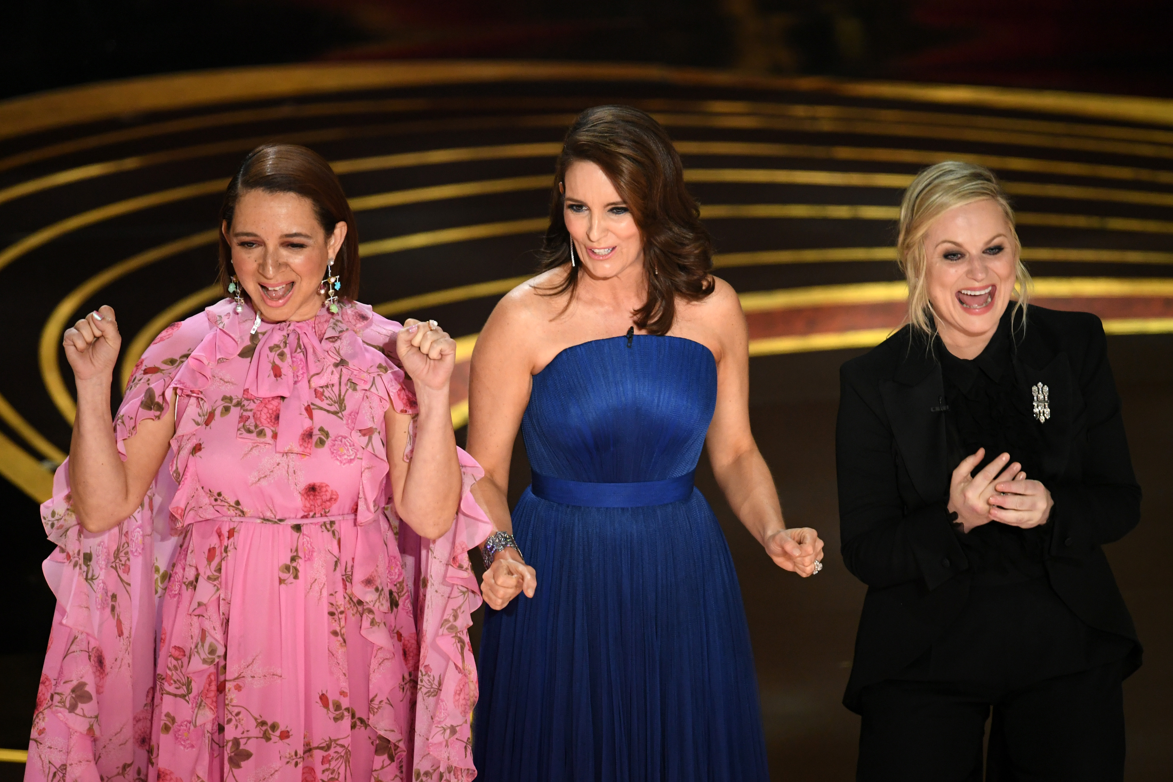 HOLLYWOOD, CALIFORNIA – FEBRUARY 24: (L-R) Maya Rudolph, Tina Fey, and Amy Poehler speak onstage during the 91st Annual Academy Awards at Dolby Theatre on February 24, 2019 in Hollywood, California. (Photo by Kevin Winter/Getty Images)