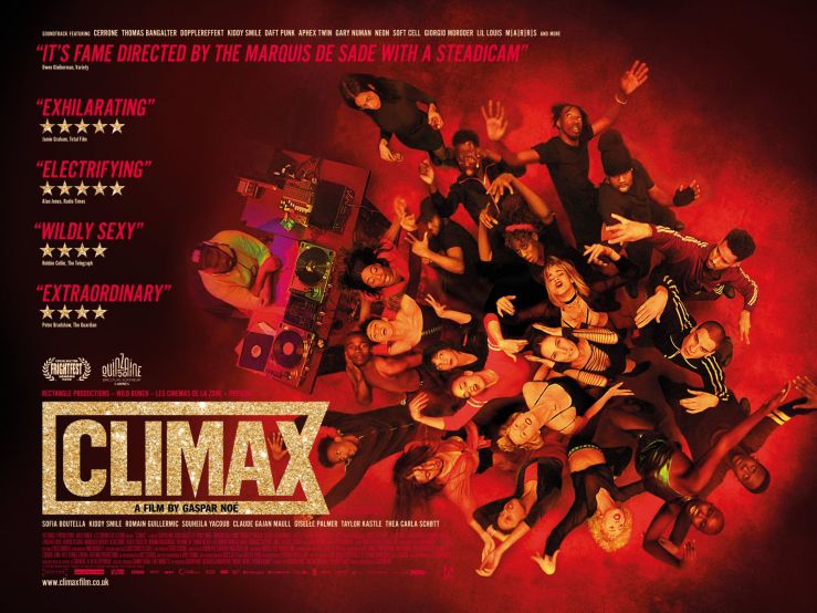 Insomma, siamo in Fondazione Prada e abbiamo appena guardato il suo ultimo lavoro Climax, presentato alla Quinzaine Des Realisateurs nel 2018 – nelle sale italiane uscirà finalmente il 13 giugno –, un horror dance movie ambientato in una palazzina abbandonata popolata di ballerini che, alle prese con prove estenuanti per una coreografia misteriosa, vengono drogati a loro insaputa. Un’ora e mezza di delirio lisergico insanguinato e intriso di ormoni, il lungometraggio che potrebbe girare un toro sotto steroidi a metà corrida se per magia gli venissero temporaneamente conferite abilità da filmmaker. E subito dopo entra Noè con passo felpato, pipettino, che pare lì lì per chiedere il permesso di parlare alla sua stessa conferenza.