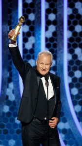 This image released by NBC shows Stellan Skarsgård accepting the award for best supporting actor in a TV series, limited series or TV movie for “Chernobyl” at the 77th Annual Golden Globe Awards at the Beverly Hilton Hotel in Beverly Hills, Calif., on Sunday, Jan. 5, 2020. (Paul Drinkwater/NBC via AP)