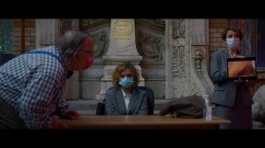 Il processo beffa finale, che sembra proseguire il lungo dialogo tra la regista e il censore comunale di I Do Not Care If We Go Down in History as Barbarians, è una caricatura delle diverse posizioni di potere, in un set straniante, con la sera che cala su partecipanti e le luci colorate della scuola per bambini che illuminano volti nascosti dietro le mascherine, rendendo le loro parole ancor più simboliche e paradossali.