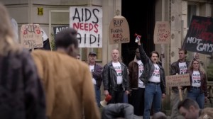 Il terzo protagonista è il gallese Colin “Gladys Pugh” Morris-Jones, un ragazzo molto distante per temperamento da Roscoe e Ritchie. Timido, riservato, timoroso di esprimere la propria diversità, Colin è apprendista presso una ditta di alta sartoria maschile. Approfittando di un viaggio di lavoro (che gli costerà il posto) nella Grande Mela sconvolta dalla malattia, Colin fa incetta di pubblicazioni riguardanti l’HIV. Un elemento non banale da considerare: negli anni Ottanta internet non esisteva. Attraverso un certosino passaparola e incontri finalizzati al mutuo aiuto, la comunità gay matura una nuova consapevolezza, imponendo all’opinione pubblica la necessità di affrontare le evidenze sanitarie e sociali del problema. In It’s a Sin esplode il brutto carattere della vecchia Inghilterra, razzista, omofoba, classista, imperialista, intrinsecamente vittoriana. Durante un colloquio per la concessione di un mutuo bancario, Ritchie deve rispondere a domande di questo tenore: ha mai diviso il letto con uomo? L’amante altolocato di Roscoe, un parlamentare conservatore di mezza età con il pallino per i ragazzi di colore, dice di sé: non sono gay, solo bisogna affondare il naso nella merda per sentire l’odore delle rose. Le manifestazioni degli attivisti LGBT sono represse con inusitata violenza dalla polizia, mentre la gente “normale” che assiste alle scene incita le manganellate al grido di “Pervertiti!”.