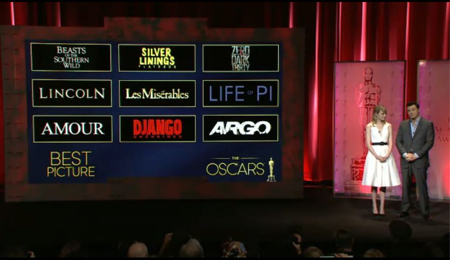L'85° Notte degli Oscar si apre con Seth MacFarland sul Palco del Dolby Theater. Prende in giro i film stranieri, Jean Dujardin, Daniel Day Lewis, Quentin Tarantino e gli altri candidati. Un ingresso classico. A dir poco... Il capitano Kirk torna dal futuro per salvare la serata... We saw your boobs: il numero musicale prende in… Continua a leggere La notte degli Oscar 2013: la diretta!